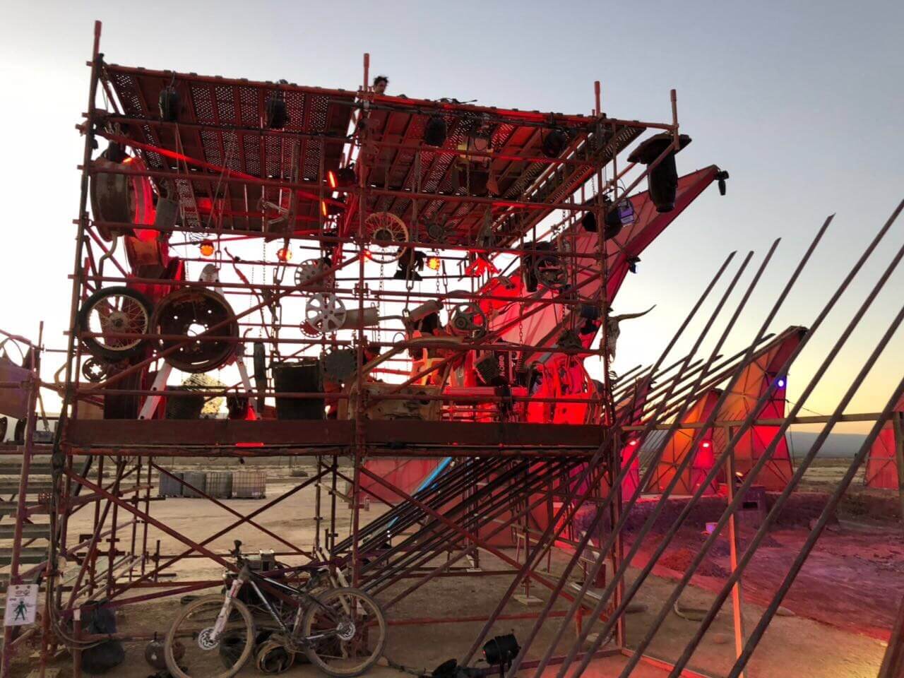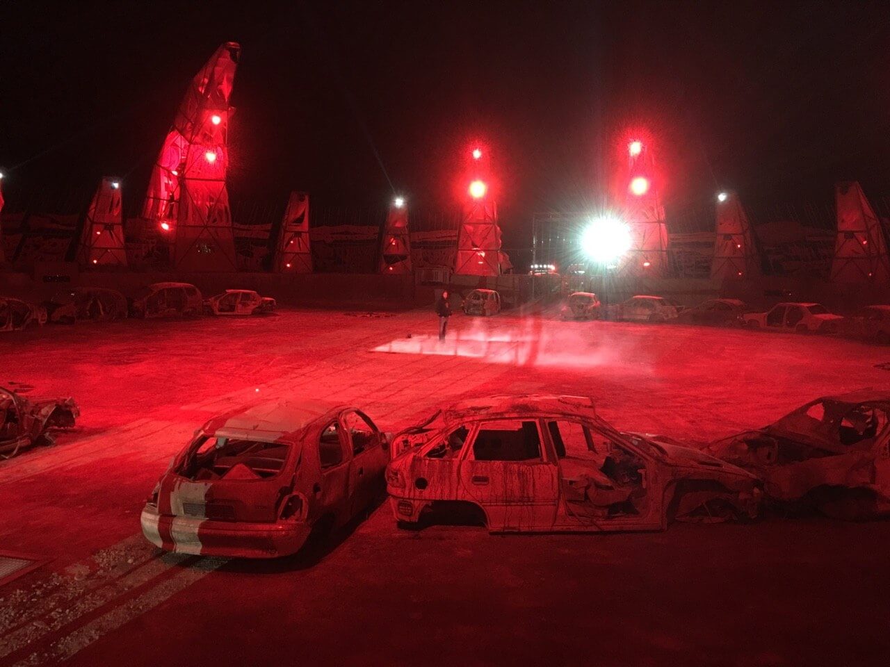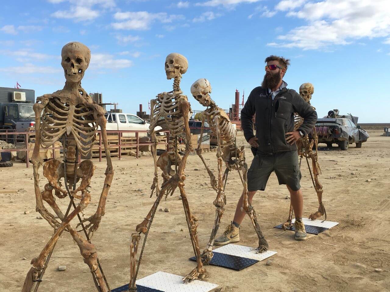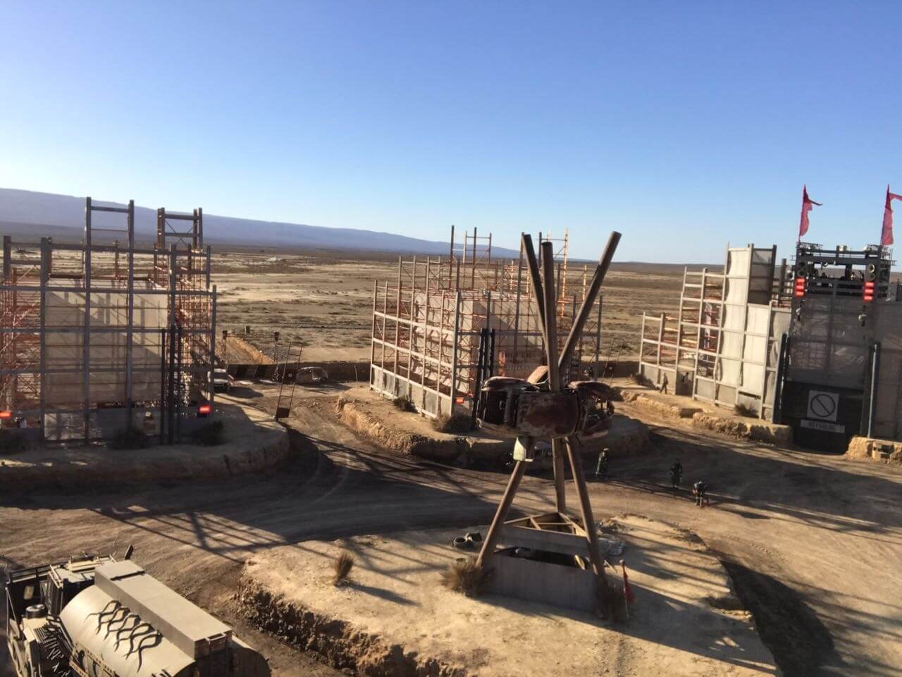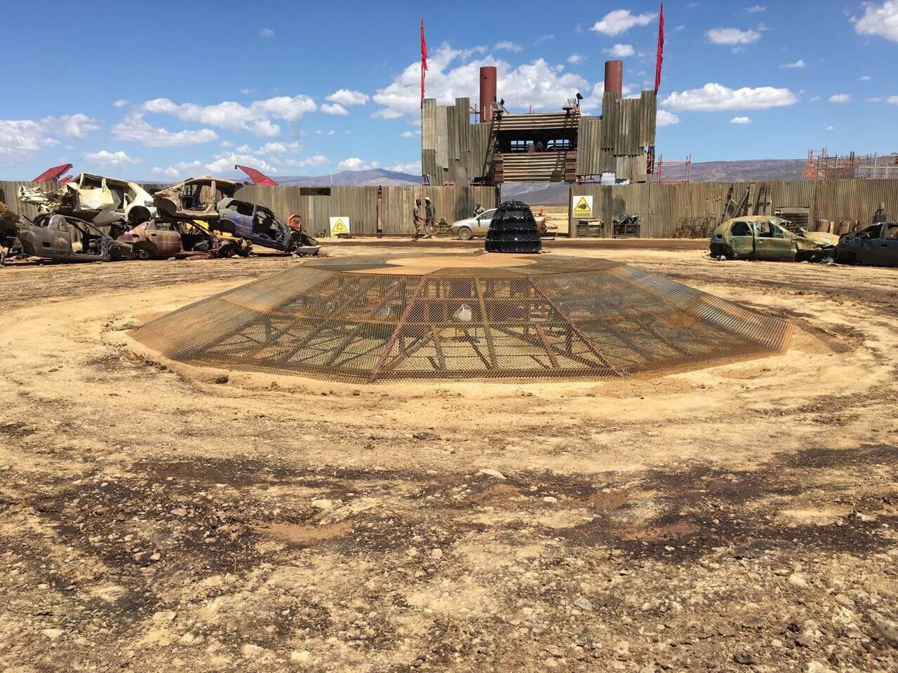 Dream Sets built three massive arenas from scaffolding and earthworks, each with unique challenges testing man and machine. With the nearest hardware store three hours away, two self-powered 5m containers were converted into fully equipped steel and carpentry workshops.