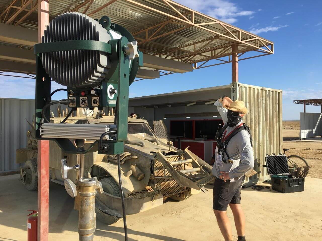 The lighting design played a critical role in shaping the atmosphere, using powerful fixtures to cut through the vast desert space and create dramatic night-time scenes. Bold colour washes, practical effects, and carefully positioned lighting enhanced depth, scale, and intensity, bringing the environment to life after dark. The result was a visually immersive and technically demanding build that pushed creative and logistical boundaries in a truly unique location.