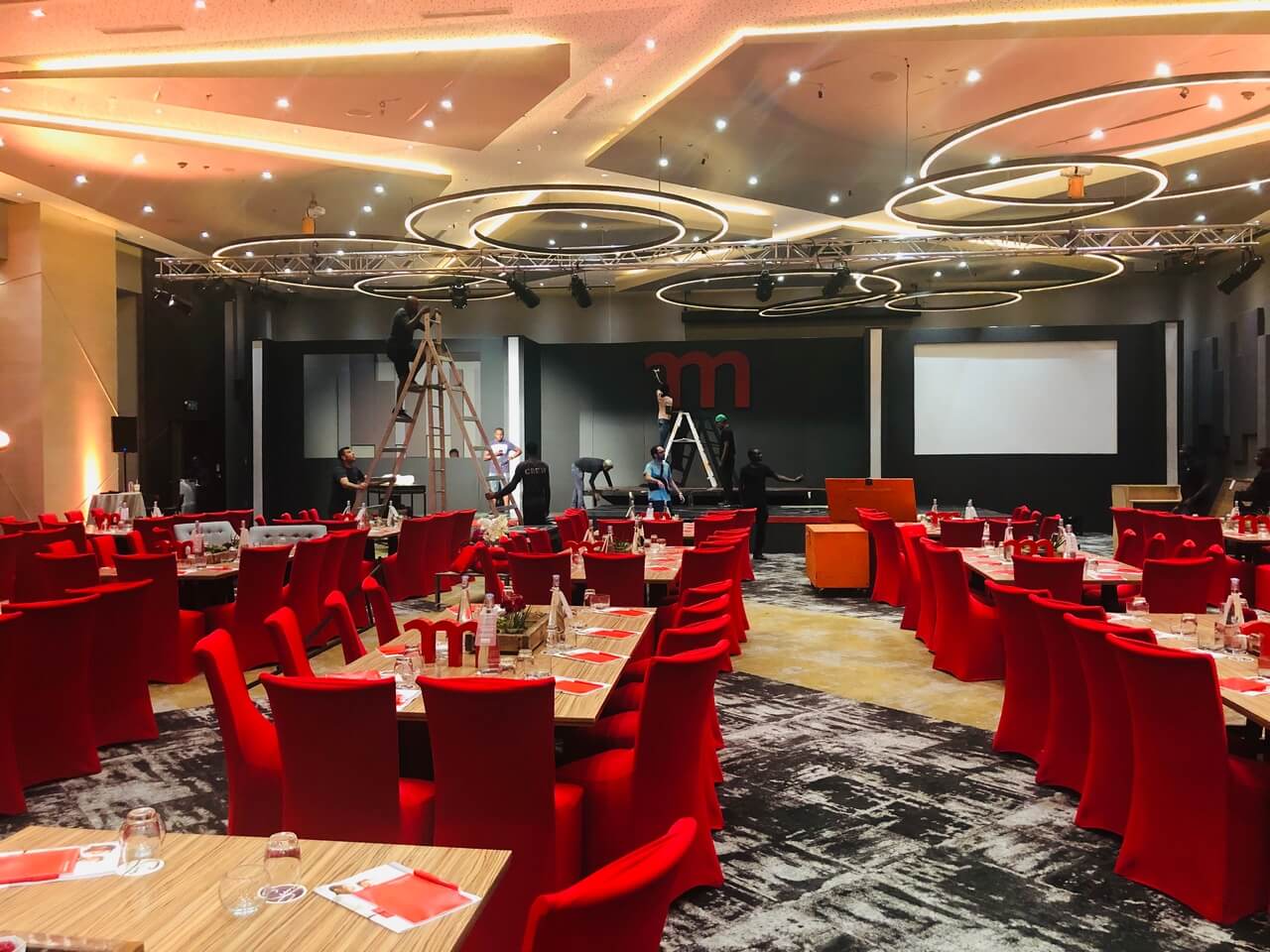 Dream Sets designed and delivered a refined, immersive environment for the Momentum Leadership Summit, transforming the venue into a polished, high-end conference and gala space. The setup combined structured stage design with large-format screens, clean architectural lines, and carefully considered branding elements, creating a cohesive look that balanced professionalism with visual impact. Banquet-style seating and layered layouts ensured both functionality and an engaging audience experience throughout the event.